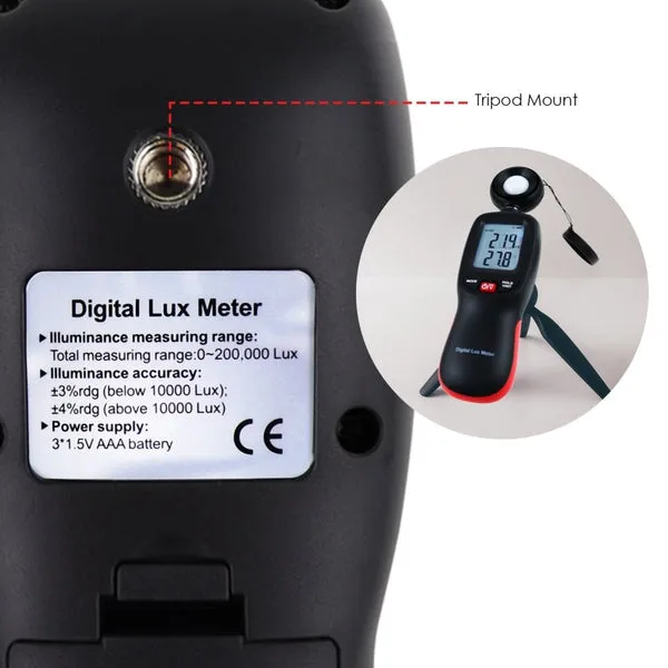 - Illuminance Measuring range: total measuring range 0~200,000 Lux, into four ranges