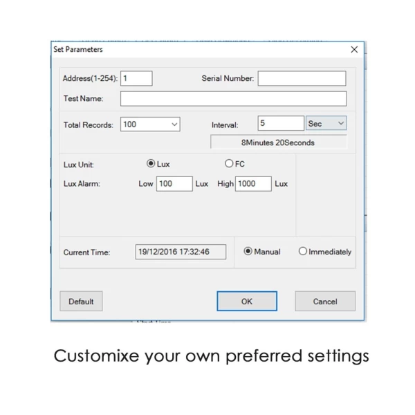 - Measurement Range: 0 ~ 200,000 Lux (0.1 ~ 18,581 Fc), switchable